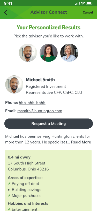 Designing a platform for eligible customers access to financial planning tools and connect with Huntington’s financial advisors and private bankers via online or the app.